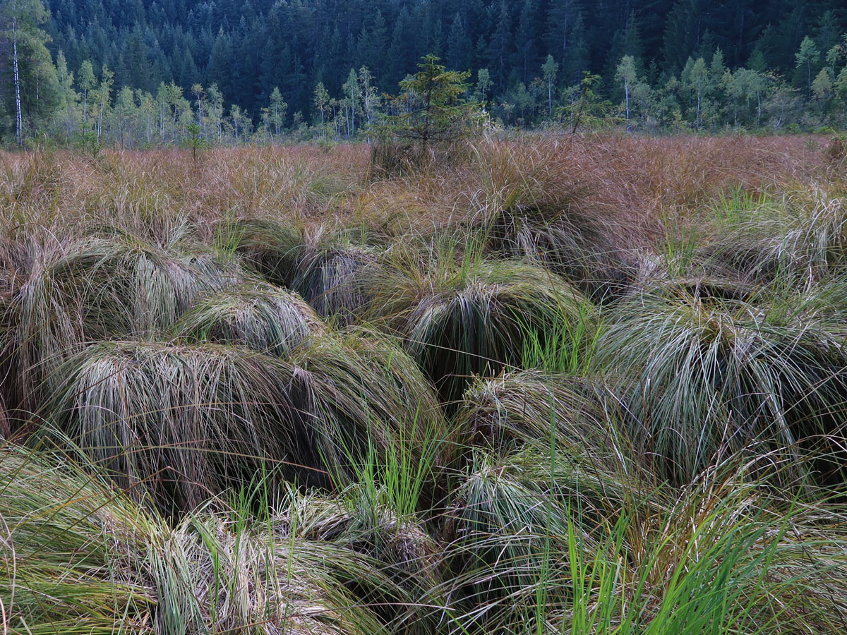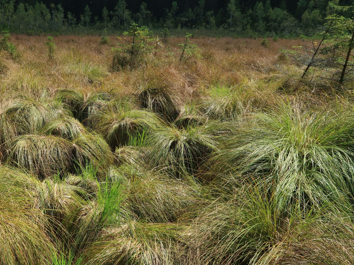 Veliko jezero u tresavi nastanjuje metlasta oštrica koja formira velike busene, pa u vreme kada ozelene njegova površina izgleda kao livada. ''Postoje ovi taburići mnogo fini koji, ja ih nazivam taburići, ali baš su zanimljivi i lepi. U proleće su bujni, zeleni, u jesen suvi, pretvore se u prave taburiće.'' naglašava Goran Kovačević koji živi nedaleko od Košaninovih jezera.
