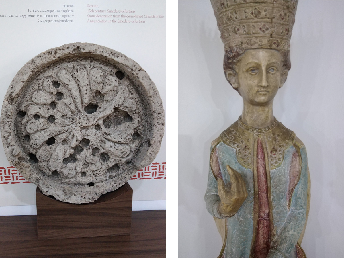 Kameni ukras rozeta iz Smederevske tvrđave iz 15.veka i figura Jerine Branković, u narodu prozvane ''Prokleta Jerina'', neki su od istaknutih predmeta koje posetioci muzeja mogu videti.