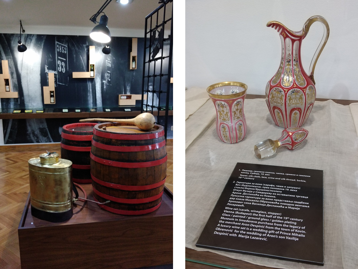 Smederevski kraj je oduvek poznat po vinogradarstvu, otuda je deo izložbe muzeja posvećen grožđu, a prikazano je šta je sve korišćeno u proizvodnji vina i preradi grožđa i koje su se poznate porodice bavile vinogradarstvom. Mnogi istaknuti ljudi tog vremena kupovali su zemlju i podizali vinograde u blizini kraljevog vinograda.