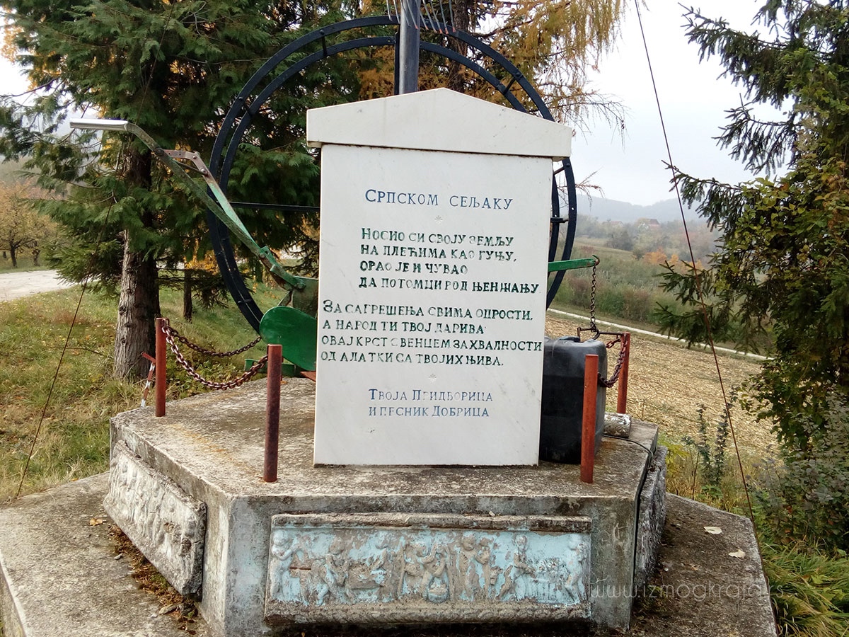 Još pre dve decenije meštani Pridvorice kod Čačka podigli su nesvakidašnji spomenik. Krst sa vencem zahvalnosti od alatki sa njiva, u spomen i čast srpskom seljaku, domaćinu – u potpisu Pridvorica i pesnik Dobrica.